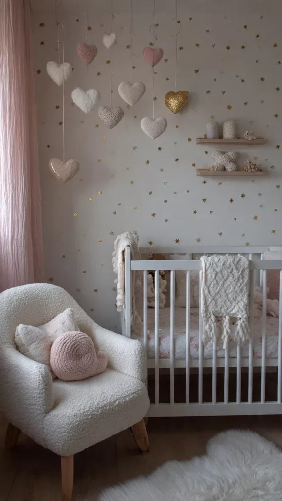 Heart or star-shaped wall pieces add a playful, magical touch without overwhelming the theme. These simple shapes feel sweet and timeless. I love how they sprinkle a little whimsy across the room. Isn’t it nice when decor feels joyful but subtle?
