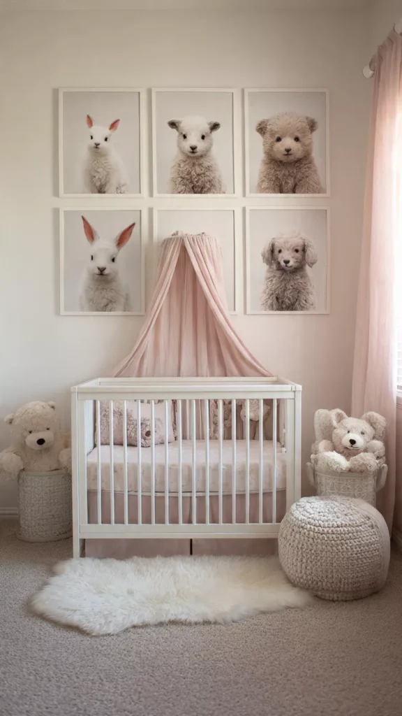 Baby animal artwork—bunnies, lambs, bears, or baby elephants—adds instant sweetness. Soft, gentle faces feel comforting and friendly for a nursery. I love how animals spark imagination even in tiny babies. Isn’t it adorable when the decor feels like little friends in the room?