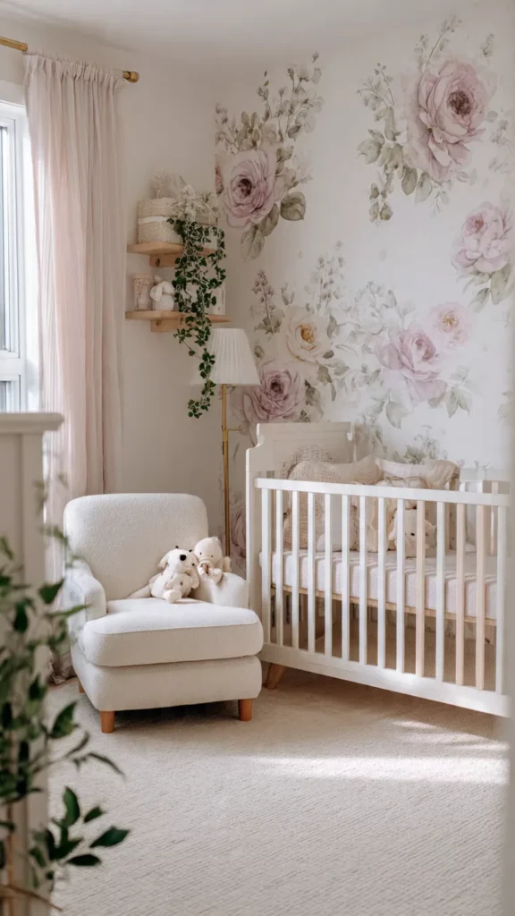A soft, subtle wallpaper—like tiny florals or gentle polka dots—creates a sweet backdrop for the room. It adds personality while staying soothing. I love how wallpaper can transform a wall without stealing the spotlight. Isn’t it the perfect blend of cute and calm?