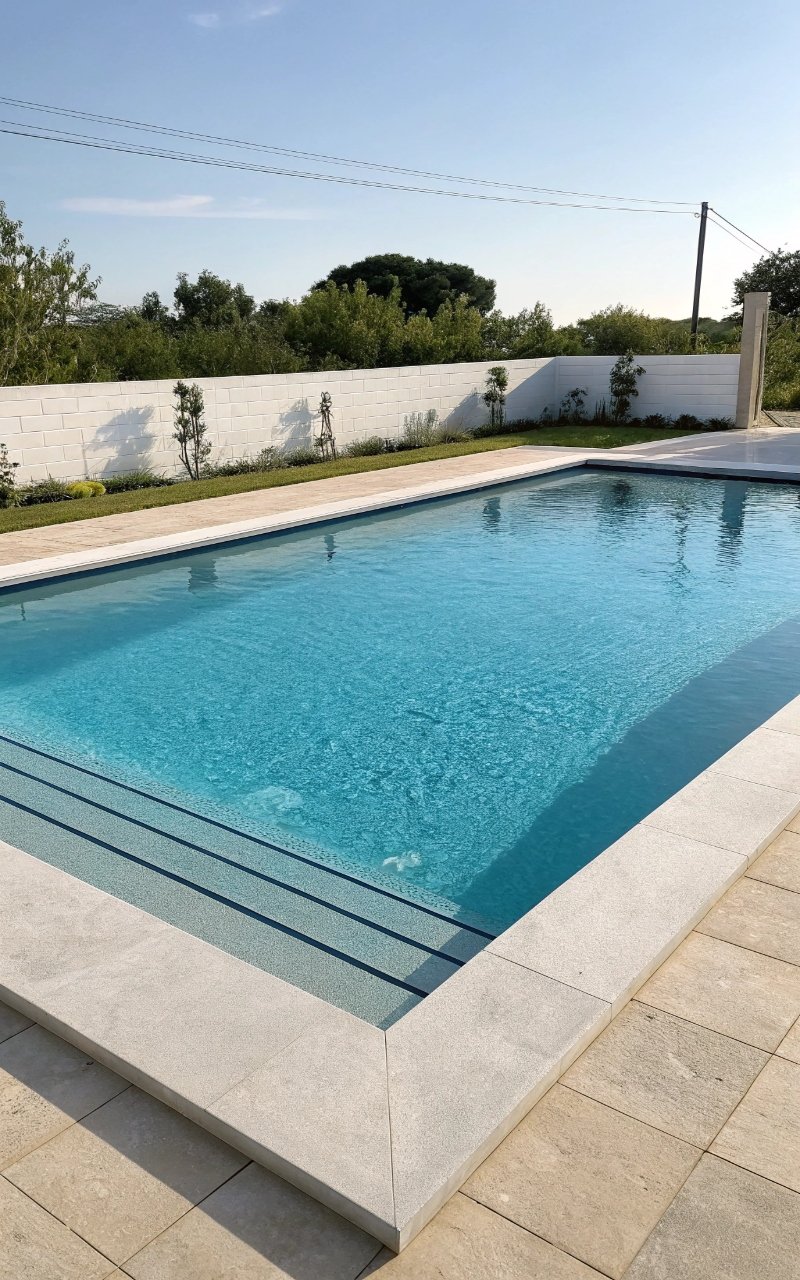 I kept the coping flush with the deck, and it gave the whole pool a cleaner, more seamless look right away. The edge feels smoother and more modern. It removes visual bulk. The finish looks polished and simple. It’s subtle, but elevates everything. Pro Tip: Match coping tone closely to the deck.