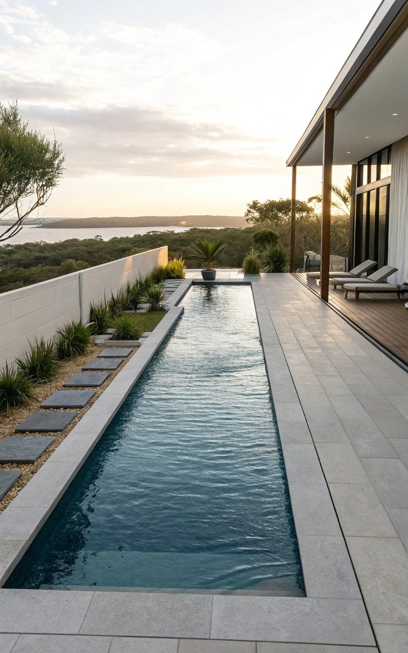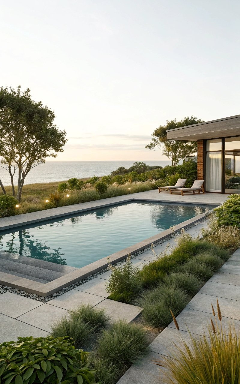 Framing the pool with low greenery softened the edges and made the whole space feel more relaxed. The plants add movement and warmth. It keeps the pool from feeling too stark. The layout feels balanced and calm. It’s simple, but transformative. Pro Tip: Stick to low-maintenance plants for easier upkeep.