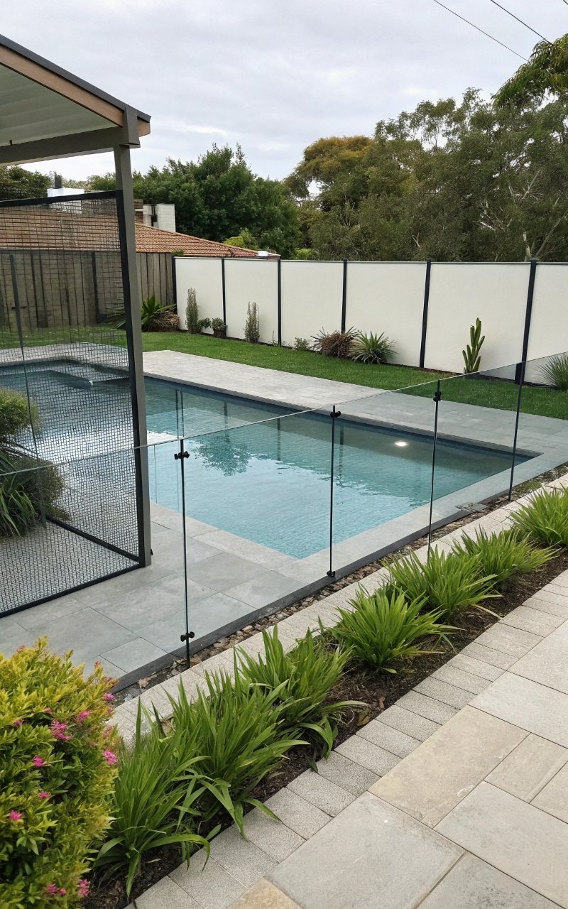 I enclosed the pool with clean fencing and soft planting, and it made the whole space feel private and calm without needing much extra design. The layout feels intimate and quiet. It creates a stronger sense of retreat. The setup stays simple and polished. It’s simple, but luxurious. Pro Tip: Use greenery to soften hard boundaries.