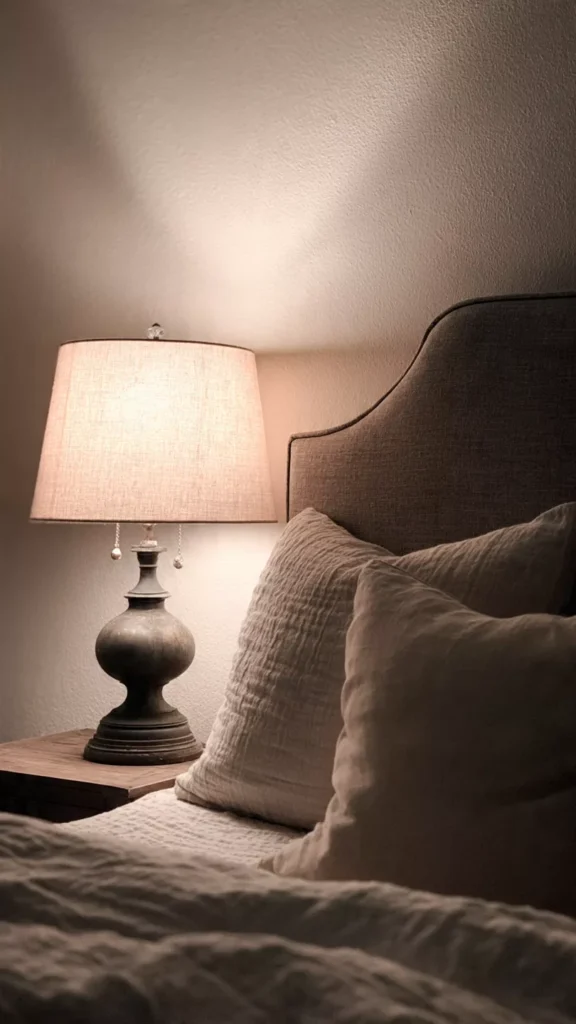 You don’t need an expensive lamp for cozy lighting. Thrifted lamps, clip-on lights, or inexpensive LED bulbs work beautifully. Warm lighting instantly makes the space feel inviting. Isn’t soft light the secret to bedtime calm?