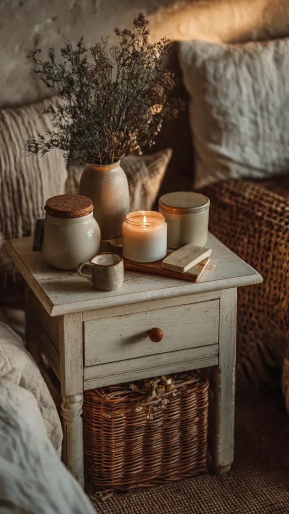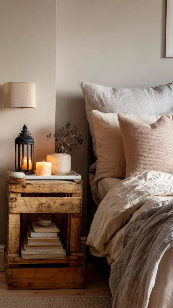 Before buying anything new, shop your home. A stool, side table, crate, or stack of vintage books can become a charming nightstand. Repurposed pieces bring character while costing nothing. I love how this approach feels creative and personal. Isn’t it satisfying to make something beautiful from what you already have?