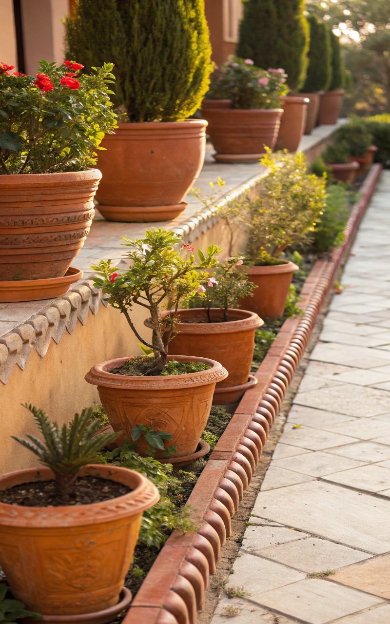 I lined up small terracotta pots along the edge of a garden bed, some upright and some tilted, and it created this playful, layered effect that felt full of character. The warm orange tones brought a cozy feel that worked beautifully with greenery. You can even plant herbs or flowers inside them for added detail. It’s like combining decoration and function in one simple idea. Doesn’t it feel nice when something practical also looks great?