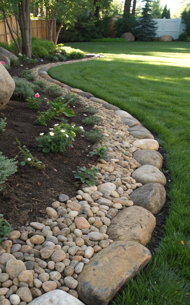 I once gathered random stones from different corners of the yard and arranged them along a flower bed, not expecting much, but wow—it looked effortlessly beautiful. The irregular shapes created a soft, natural flow that felt like it belonged there all along. The mix of sizes added depth, and the earthy tones paired perfectly with the plants. It’s the kind of border that doesn’t scream for attention but quietly elevates everything around it. Ever notice how nature rarely uses straight lines, yet it always looks perfect?