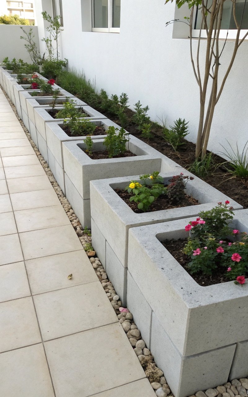 I picked up a few cheap concrete blocks from a local shop, thinking they’d just be functional, but they ended up looking surprisingly sleek. Their clean lines created a modern contrast against the softness of plants, and I even used the hollow spaces to plant small flowers. It turned into a border and planter combo, which felt like a total win. The gray tone also acts like a neutral base that lets your plants stand out. Who knew something so basic could look this cool?