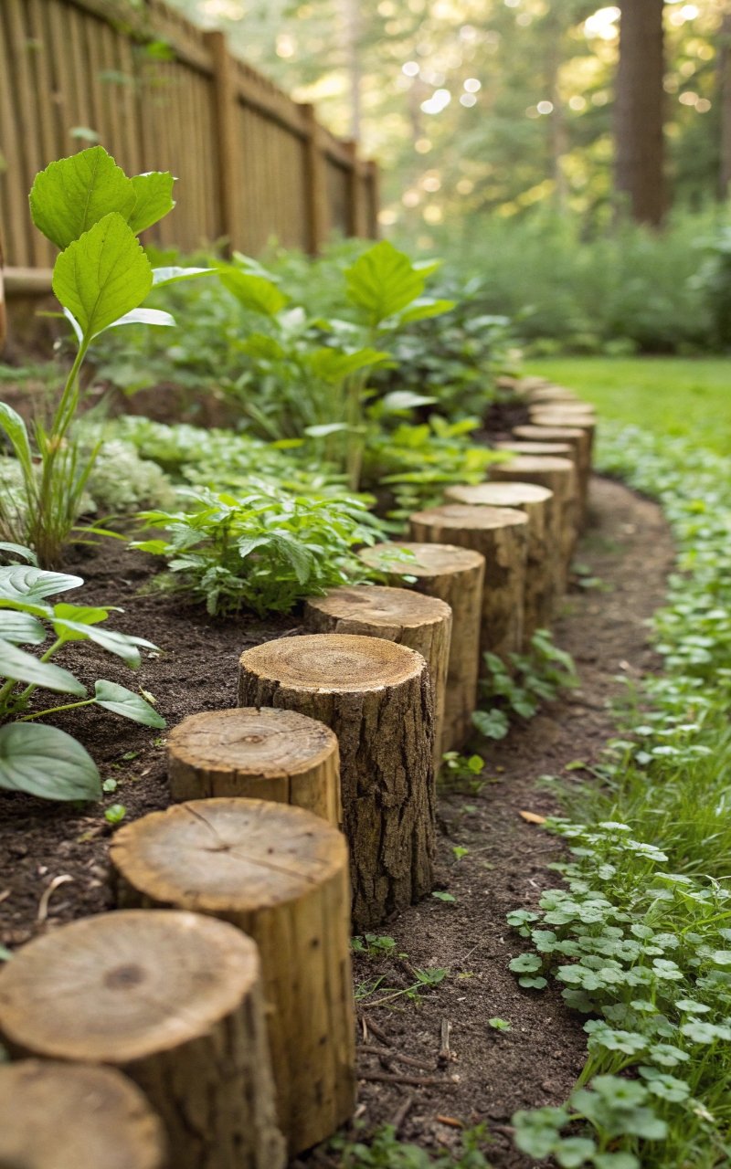 One weekend, after trimming some branches, I cut them into short logs and lined them up along my garden edge, and the result felt like a cozy forest detail right at home. The natural wood tones blended beautifully with the greenery, creating a border that felt organic instead of forced. Each piece had its own shape and texture, which added character you just can’t buy in store-bought materials. It’s one of those designs that feels calm and grounding, like the garden just breathes a little easier. Plus, it’s ridiculously budget-friendly if you already have access to branches.