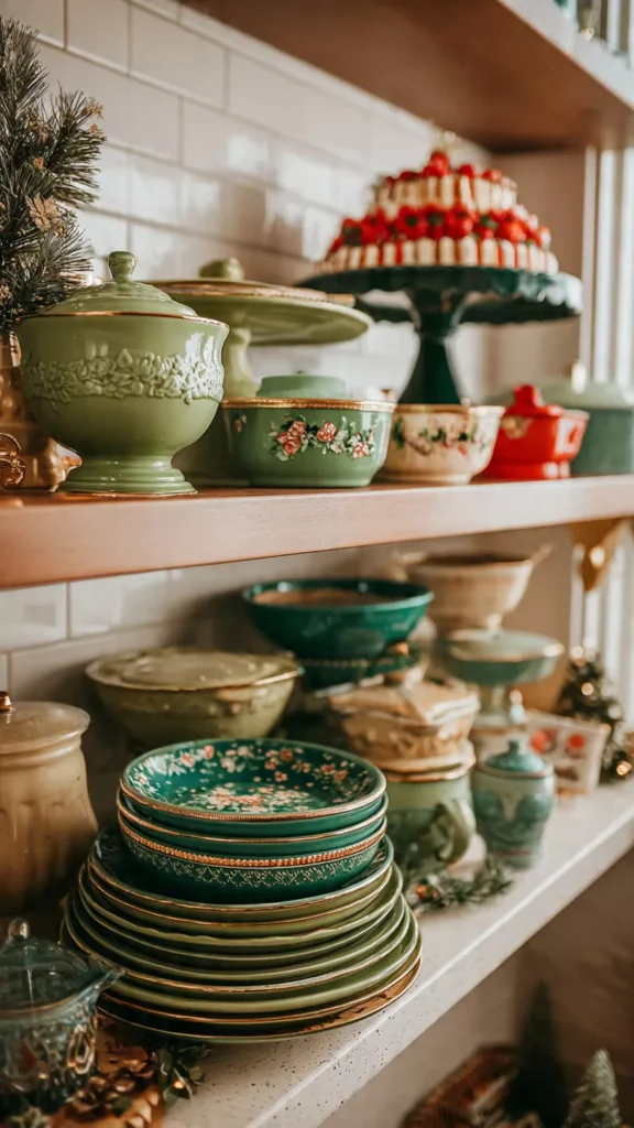 14. Display Holiday Servingware as Decor