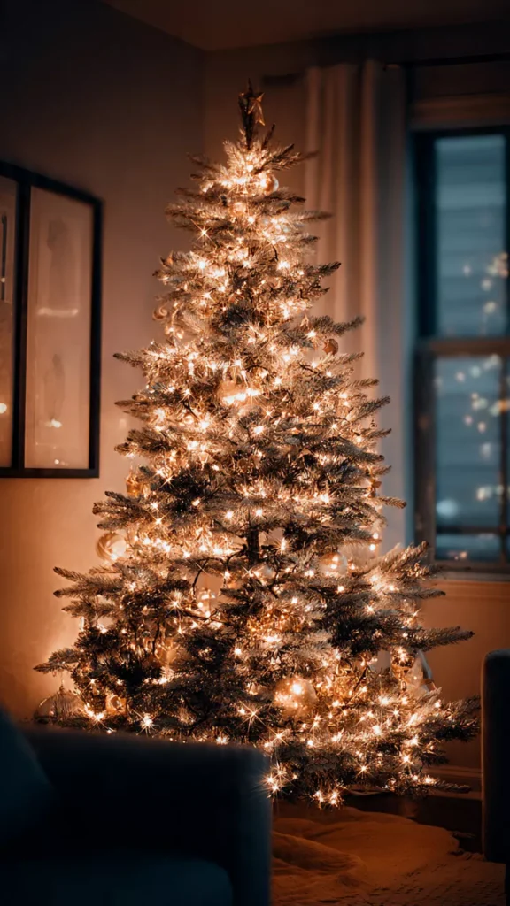 Warm white lights create a soft glow that feels cozy and inviting rather than harsh. They highlight the tree gently, especially in the evenings when the room is dim. I’ve found that lighting alone can make or break a minimalist look. Why overwhelm the tree when light can do the heavy lifting? This choice keeps things elegant.