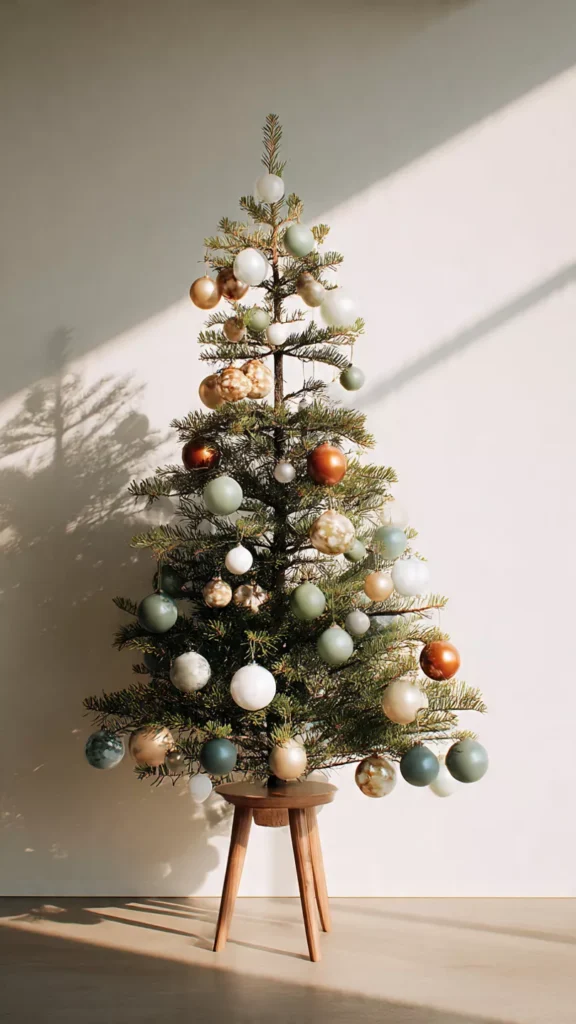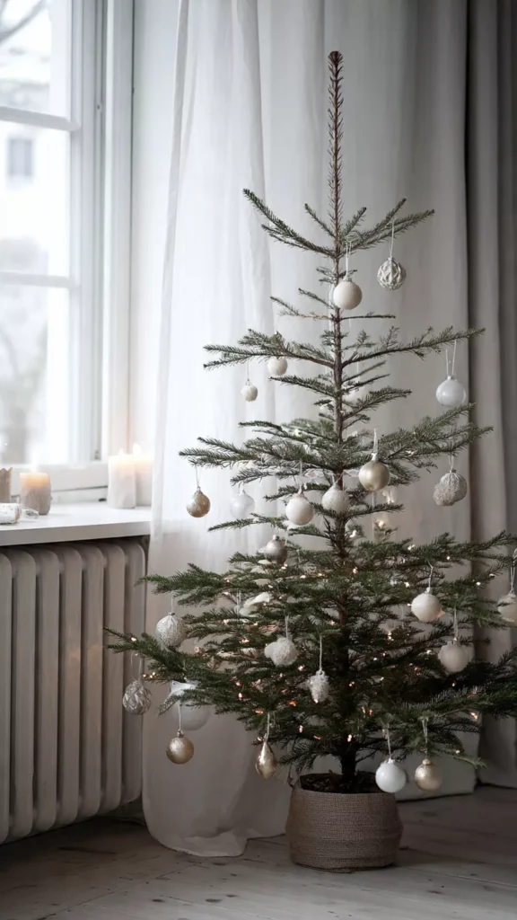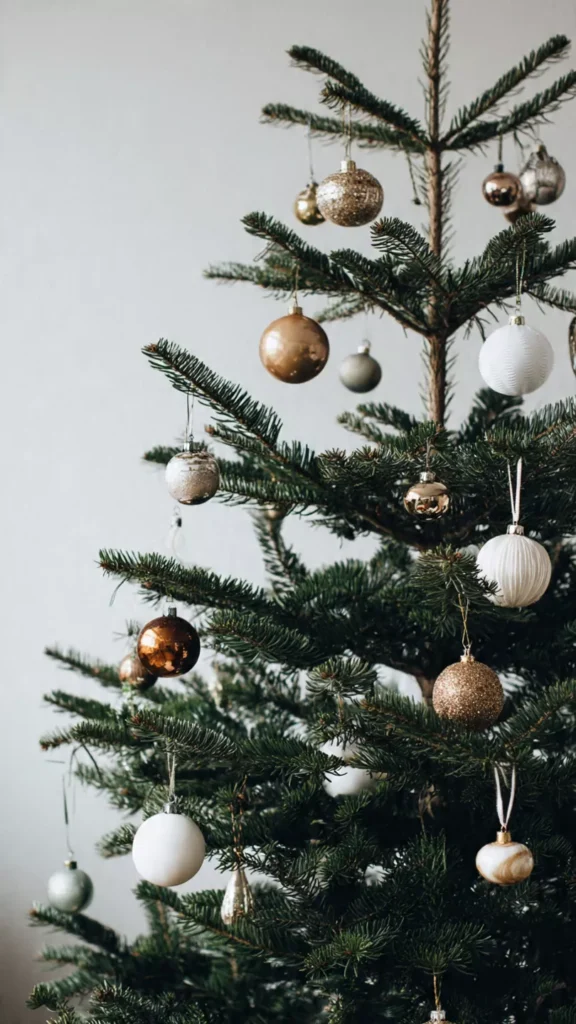 Sometimes the most minimalist choice is simply honoring the tree’s natural beauty. Sparse décor allows the branches, needles, and silhouette to shine. I love how this approach feels honest and calming. Isn’t the tree already beautiful on its own? This mindset defines true minimalism.
