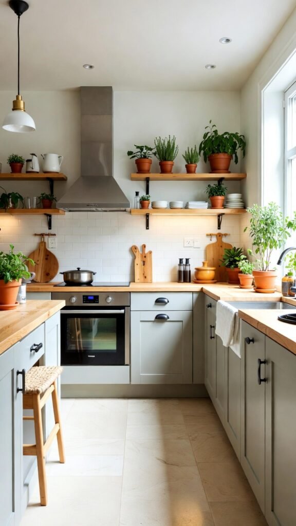 Plants bring life and freshness into a modern Scandinavian kitchen. I love how herbs or small potted plants soften the clean lines. They add color and energy. The space feels alive. Doesn’t greenery make a kitchen happier? It’s a simple way to add charm.