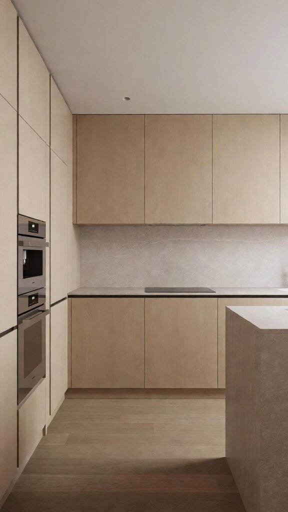 Wood cabinets bring warmth and texture into a modern Scandinavian kitchen. I love how light woods like oak or birch feel organic and soothing. They balance out sleek surfaces beautifully. The room feels grounded and inviting. Doesn’t natural material make a space feel alive? It’s a perfect contrast to clean lines.
