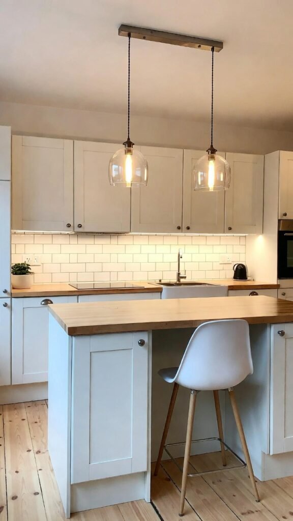 Modern pendant lights above the island or dining area add both function and style. I love how they create a focal point while still feeling minimal. The warm glow adds coziness. Lighting becomes part of the design. Doesn’t good lighting change everything? It’s a must in Scandinavian kitchens.