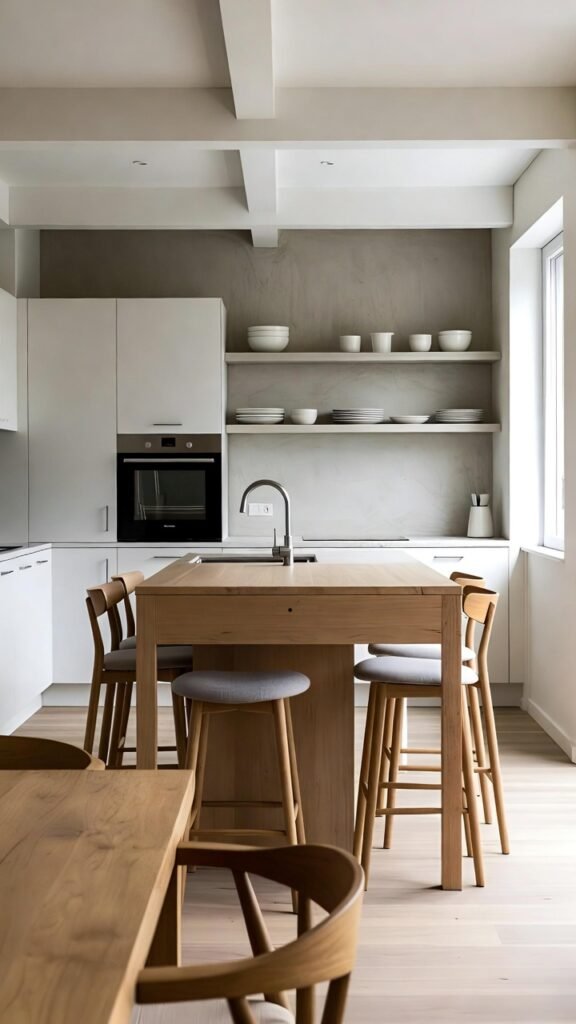 A simple island adds workspace and gathering space without clutter. I love how it becomes the heart of the kitchen. The clean design keeps it from feeling heavy. It’s both practical and social. Doesn’t a central island make a kitchen feel inviting? It’s a Scandinavian favorite.