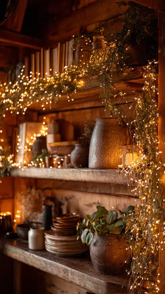 String lights are the heartbeat of holiday décor, but warm amber tones give them that rustic cabin glow. When I drape them over shelves or weave them through garlands, the whole room shifts into this soft, dreamy mood. The warm light bounces off wood and metal in ways that feel cozy instead of harsh. It’s that subtle “wow, this feels good” moment guests notice but can’t always pinpoint. Isn’t atmosphere everything during the holidays? Lighting is your silent storyteller.