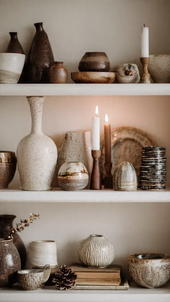 Handmade decor feels deeply aligned with Scandinavian values of simplicity and authenticity. Hand-thrown ceramics, irregular candle holders, and textured pottery add quiet character without flash. Their imperfections make them feel human instead of decorative. You can almost feel the hands that shaped them. Isn’t there something comforting about décor that isn’t trying too hard? Pro Tip: Display handmade pieces in small, intentional groupings for quiet impact.