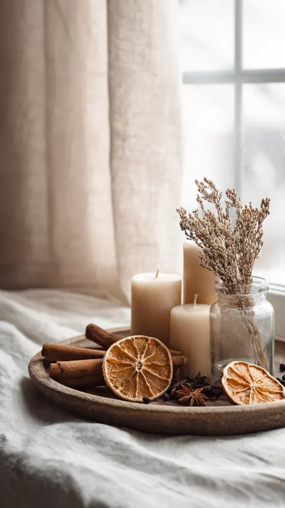 Nothing defines Scandinavian holiday style more than layered candlelight scattered across surfaces at different heights. It replaces harsh overhead lighting with an amber glow that feels intimate and deeply soothing. I love how it turns ordinary evenings into slow, sacred moments without any effort at all. Even the simplest decor looks elevated when it floats in candlelight. Doesn’t soft light instantly change how a room feels emotionally? Pro Tip: Choose unscented taper candles so the visual stays calm and clean.