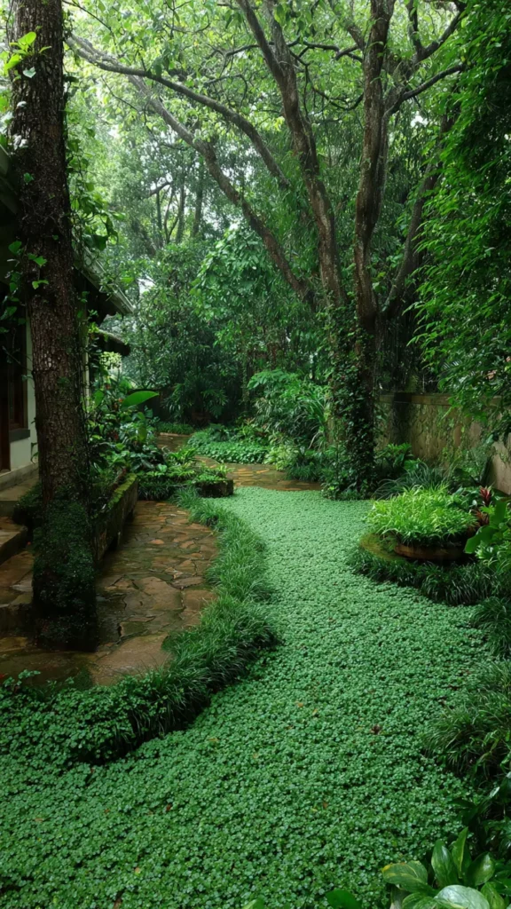 Instead of bare soil, plant soft, low-growing greenery under trees or along paths. It fills space beautifully and reduces maintenance. I love how it creates a carpet-like look. Doesn’t it feel cozy and natural?