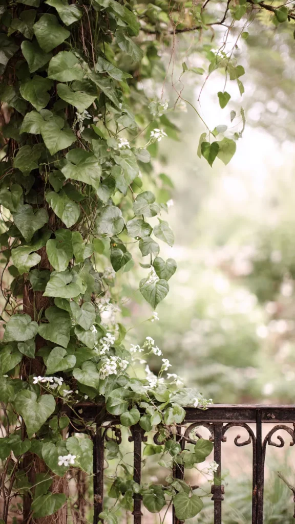 Climbing vines instantly soften fences, walls, or pergolas. They add height and romance without taking up much ground space. I adore the storybook feel they bring. Doesn’t trailing greenery feel magical?
