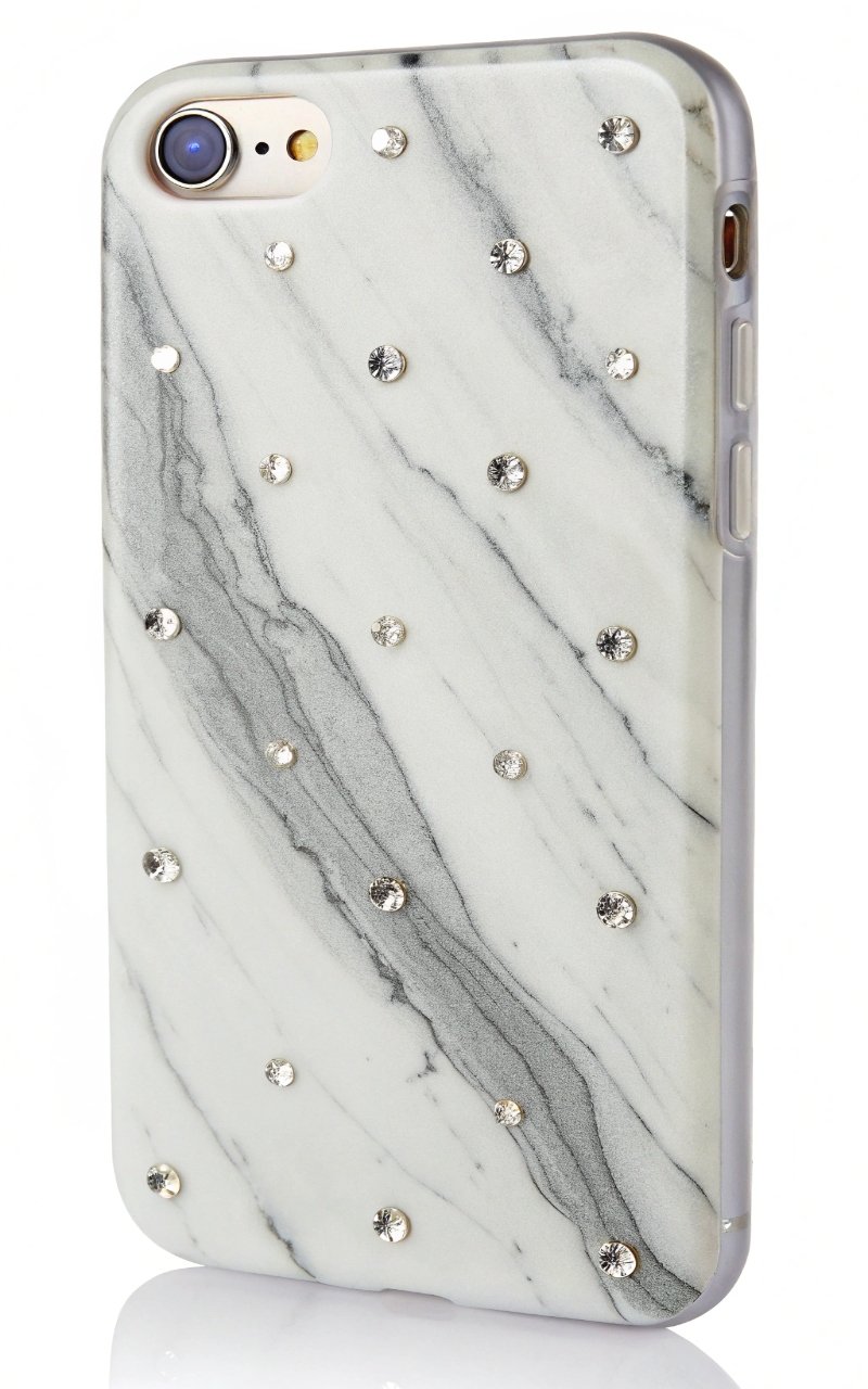 Combining a marble background with rhinestones created a chic, modern look. The swirled pattern and subtle sparkle feel elegant and stylish. I love how it balances soft design with bold accents. It’s not too flashy, but still catches the eye. Have you ever mixed textures like this? It adds a refined touch.
