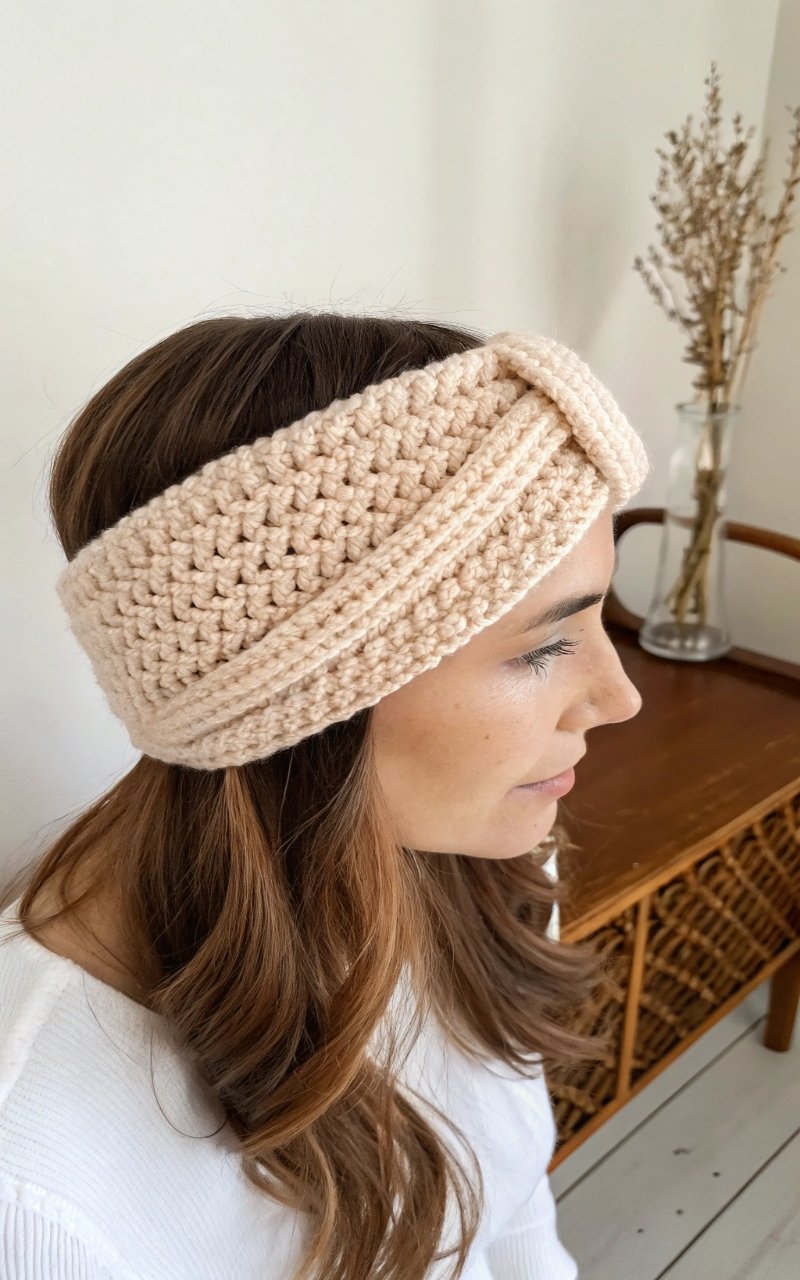 A crochet headband is stylish and easy to make. I love the cozy texture and stretchy feel. The gift feels handmade without being too time-consuming. Nothing feels intimidating. Doesn’t wearable crochet feel extra rewarding? It’s great for cooler weather.
