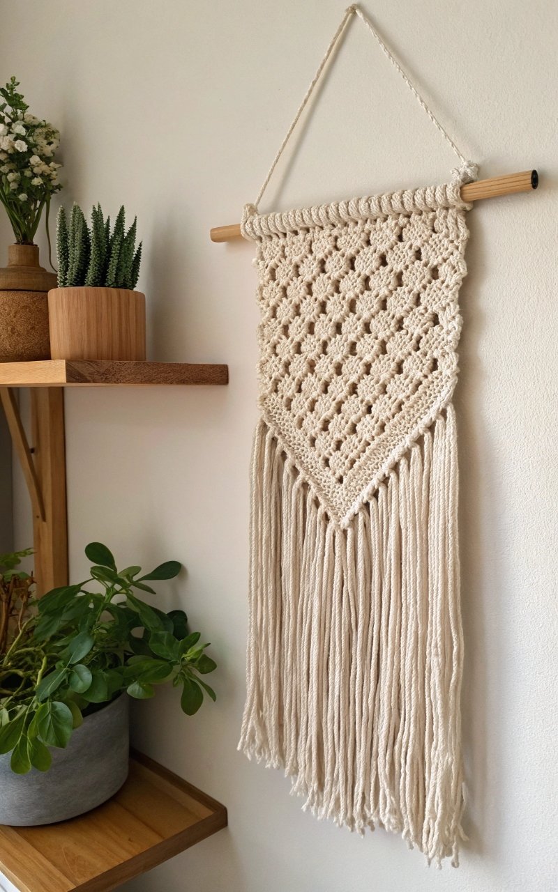 A mini wall hanging feels creative and giftable. I love simple designs with fringe or soft neutral tones. The project feels artistic without being too difficult. Nothing feels too advanced. Doesn’t handmade decor always have more charm? It’s a beautiful beginner idea.