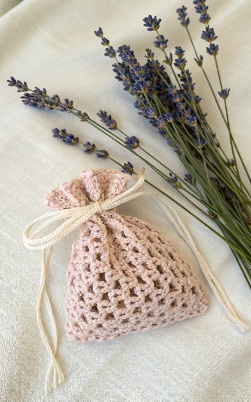 A crochet sachet filled with dried lavender makes such a sweet gift. I love how it feels both decorative and calming. The project feels delicate and thoughtful. Nothing feels complicated. Doesn’t a scented handmade gift feel extra special? It’s lovely for drawers or closets.