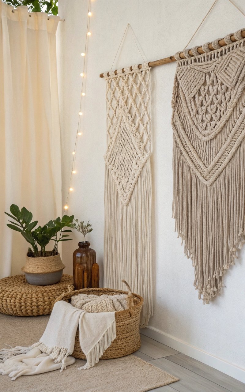 I hung a few macramé pieces, and they added texture and a handcrafted feel that fits perfectly with the boho aesthetic. The woven details create visual interest. It feels artistic and relaxed. The decor adds depth without clutter. It’s subtle, but effective. Pro Tip: Use neutral tones for a softer look.