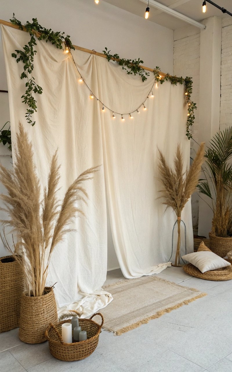I created a simple backdrop with fabric and natural elements, and it became a beautiful focal point for photos. The design feels clean but still styled. It enhances the overall theme. The setup feels intentional. It’s simple, but effective. Pro Tip: Keep details minimal for a balanced look.