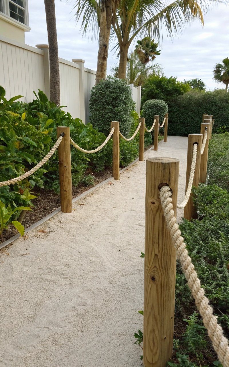A rope fence might not be the first thing that comes to mind, but it adds a relaxed, coastal vibe that’s hard to resist. The thick, textured lines create a soft boundary that feels casual and inviting. It’s easy to install and doesn’t require heavy materials, which makes it super budget-friendly. I love how it keeps the space defined without feeling restrictive. Isn’t it nice when something simple feels this creative? It’s definitely a fun option to try.