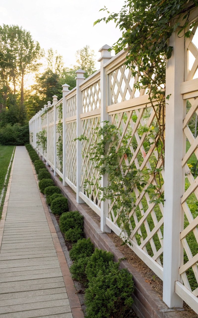 A lattice fence adds structure while still letting light and air pass through. The crisscross pattern creates visual interest without feeling heavy or closed off. I like how it can support climbing plants, making it even more dynamic over time. It’s decorative but still functional, which is always a win. Doesn’t it feel nice when something looks delicate but works hard? It’s an affordable way to add style.
