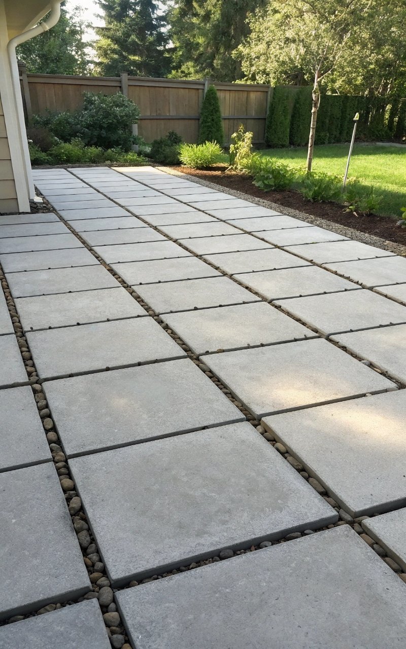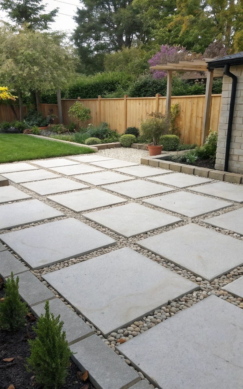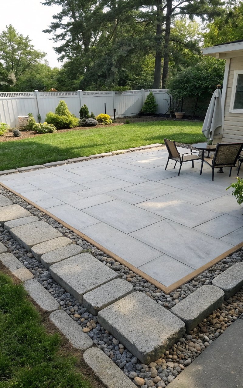 I spaced out inexpensive pavers and filled the gaps with pea gravel, and it made the patio feel more styled without raising the cost much. The gravel adds texture and keeps drainage easy. It fills space cheaply and looks polished. The mix feels balanced. It’s affordable and smart. Pro Tip: Add edging to keep gravel from spreading.