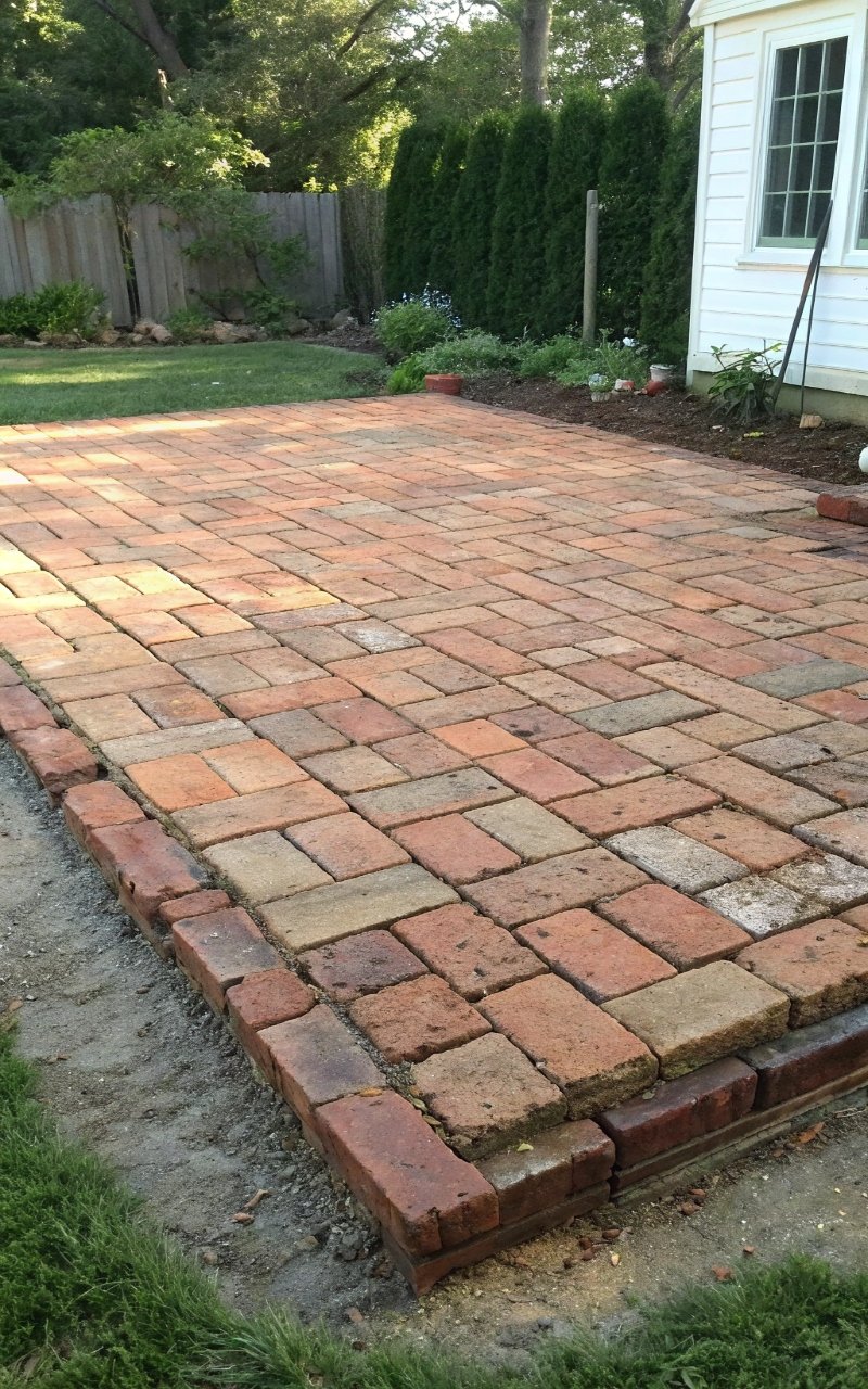 I used reclaimed brick instead of buying new pavers, and it gave the patio texture and charm for much less. The worn surface adds character instantly. It feels warm and lived-in. The cost stays low with salvaged materials. It’s simple, but full of personality. Pro Tip: Check thickness before laying reclaimed pieces.