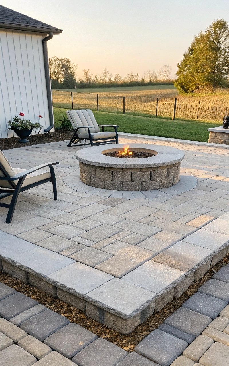 I created a circular patio with basic pavers, and the curved shape made it feel more custom than the materials were. The round layout feels softer and more social. It adds a focal point to the yard. The smaller size keeps it affordable. It’s simple, but eye-catching. Pro Tip: Mark the circle with string before building.