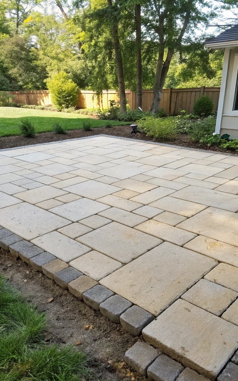 Using different paver sizes made the patio feel more designed without making it much harder to build. The variation adds texture and visual interest. It looks less basic without extra cost. The layout feels more custom. It’s simple, but elevated. Pro Tip: Dry-fit the pattern before setting anything.
