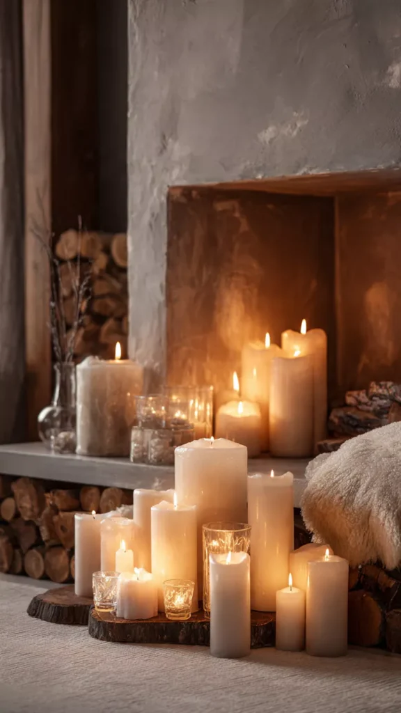 Even when the fire isn’t burning, candles bring that same sense of warmth and intimacy. I’ve always loved the way flickering light softens every surface around the hearth. Doesn’t candlelight feel like a hug for the room?