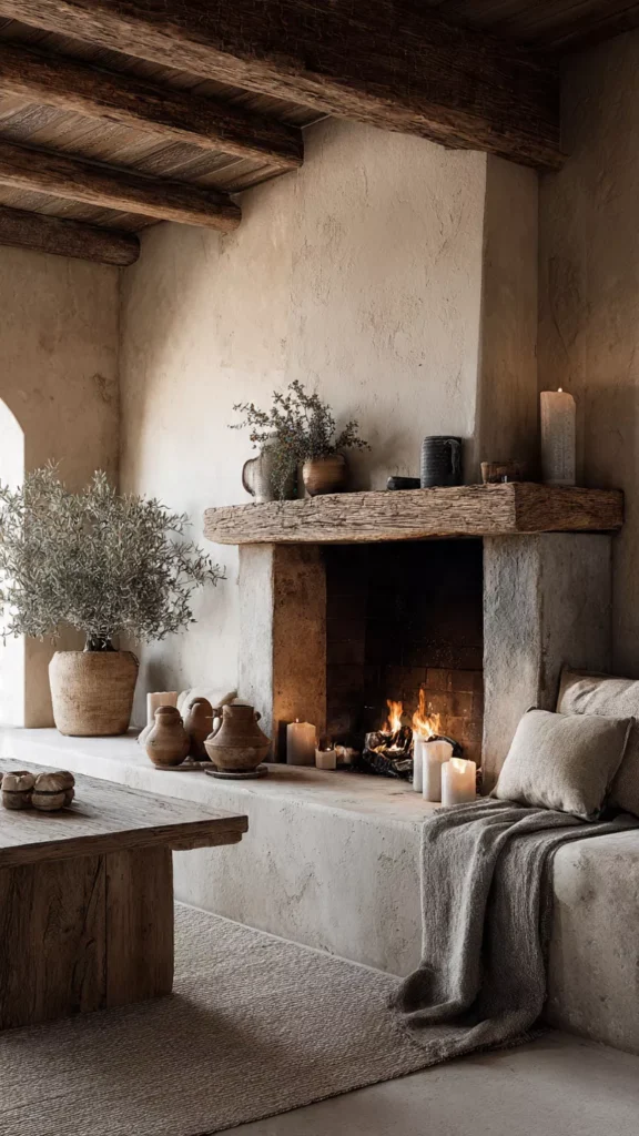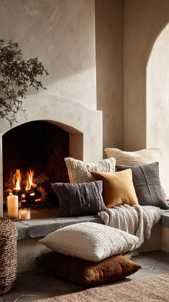 Wood, stone, clay, and linen instantly bring warmth to the space. Mixing these textures keeps the hearth feeling earthy and grounded. I always think natural materials tell a softer story. Doesn’t authenticity feel comforting?