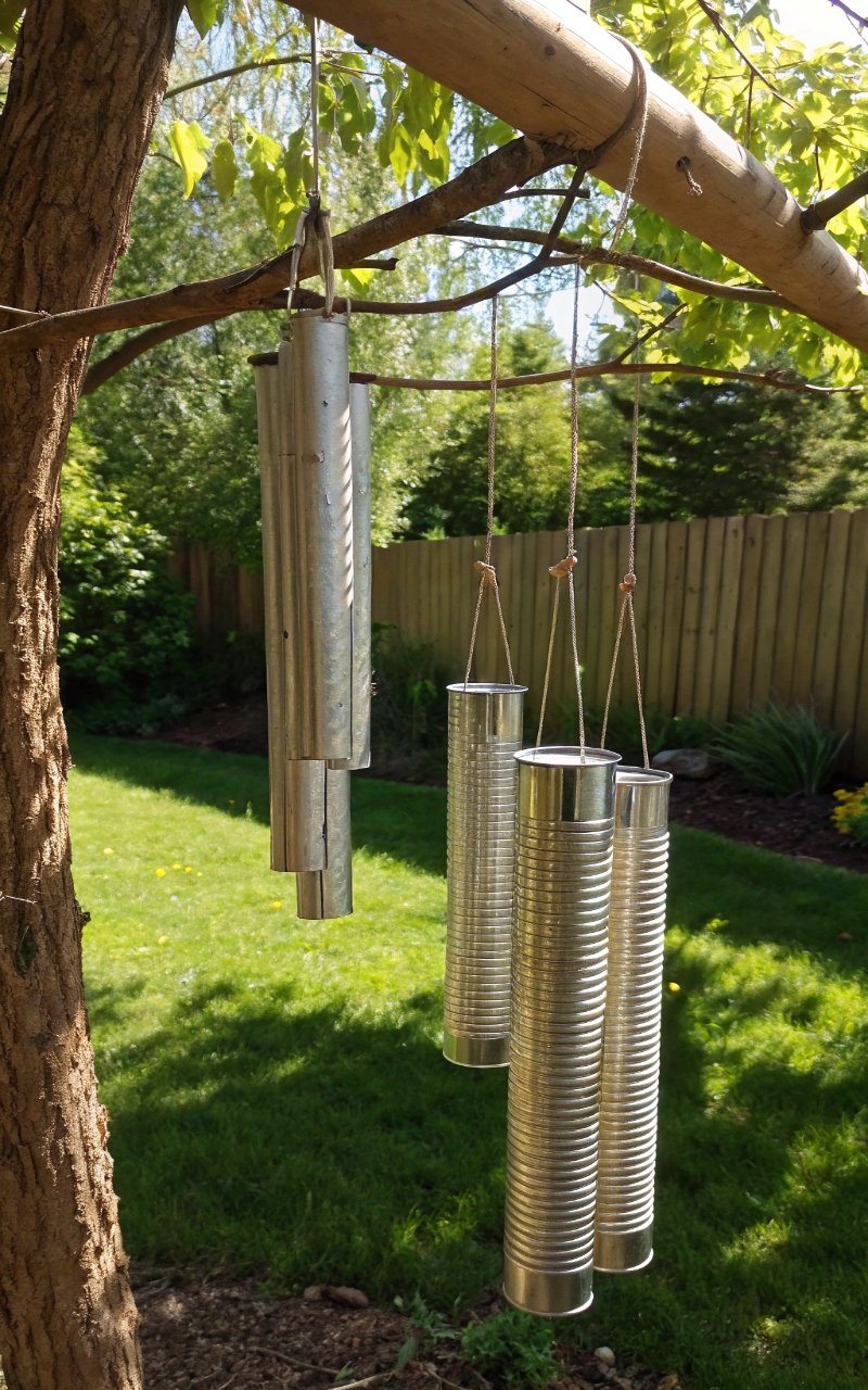 Cut strips of aluminum and hang them to create wind chimes. I love how the metal catches the breeze. The sound feels gentle and relaxing. Nothing feels dull. Doesn’t handmade decor feel special? It’s a lovely outdoor project.