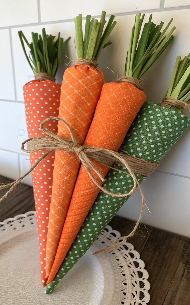 This one is playful in the best way. I love making faux carrots from fabric or paper and bundling them together for kitchen or table decor. The display feels cheerful and fun. Nothing feels boring. Doesn’t Easter decor get cuter when it leans a little whimsical? Absolutely.