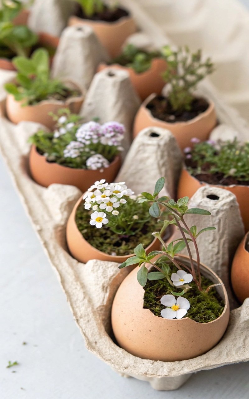 Tiny eggshell planters feel creative and surprisingly elegant. I love filling them with little flowers or herbs and displaying them in an egg carton or tray. The decor feels fresh and unique. Nothing feels generic. Doesn’t using unexpected materials make DIY more fun? Absolutely.