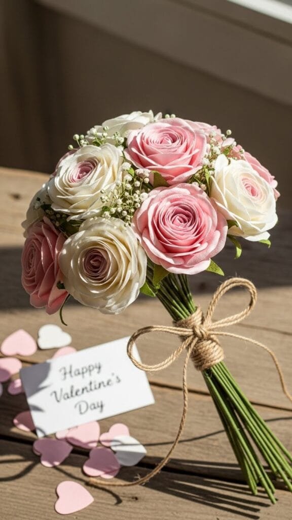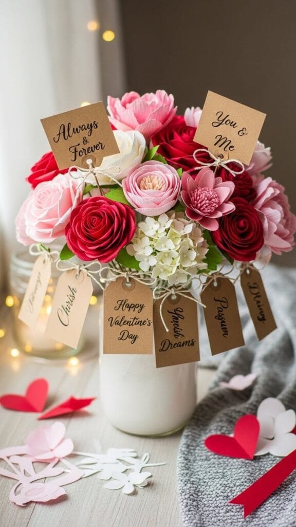 A small paper flower posy feels intimate and sweet, perfect for a quiet Valentine gift. I love how dainty and charming these bouquets look. They’re simple yet full of love. It’s a gentle way to show you care. Doesn’t small sometimes feel more meaningful? Mini posies are adorable.