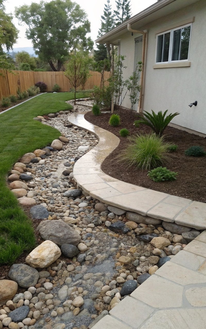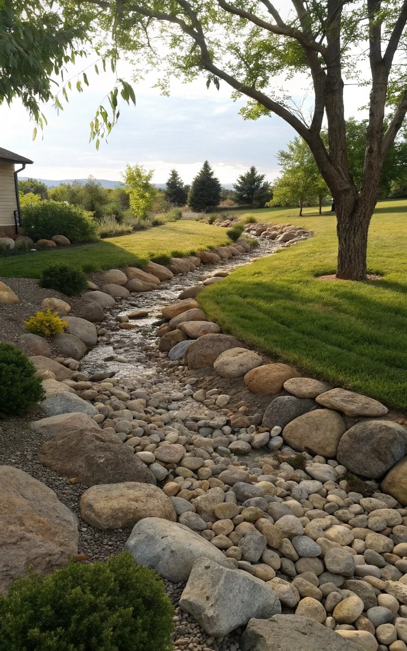 Creating a dry river bed turned a plain yard into something visually interesting. The flowing layout and layered stones mimic a natural stream. I love how it adds movement without water. It feels creative and low-maintenance. Have you ever wanted something that stands out? This one definitely does.