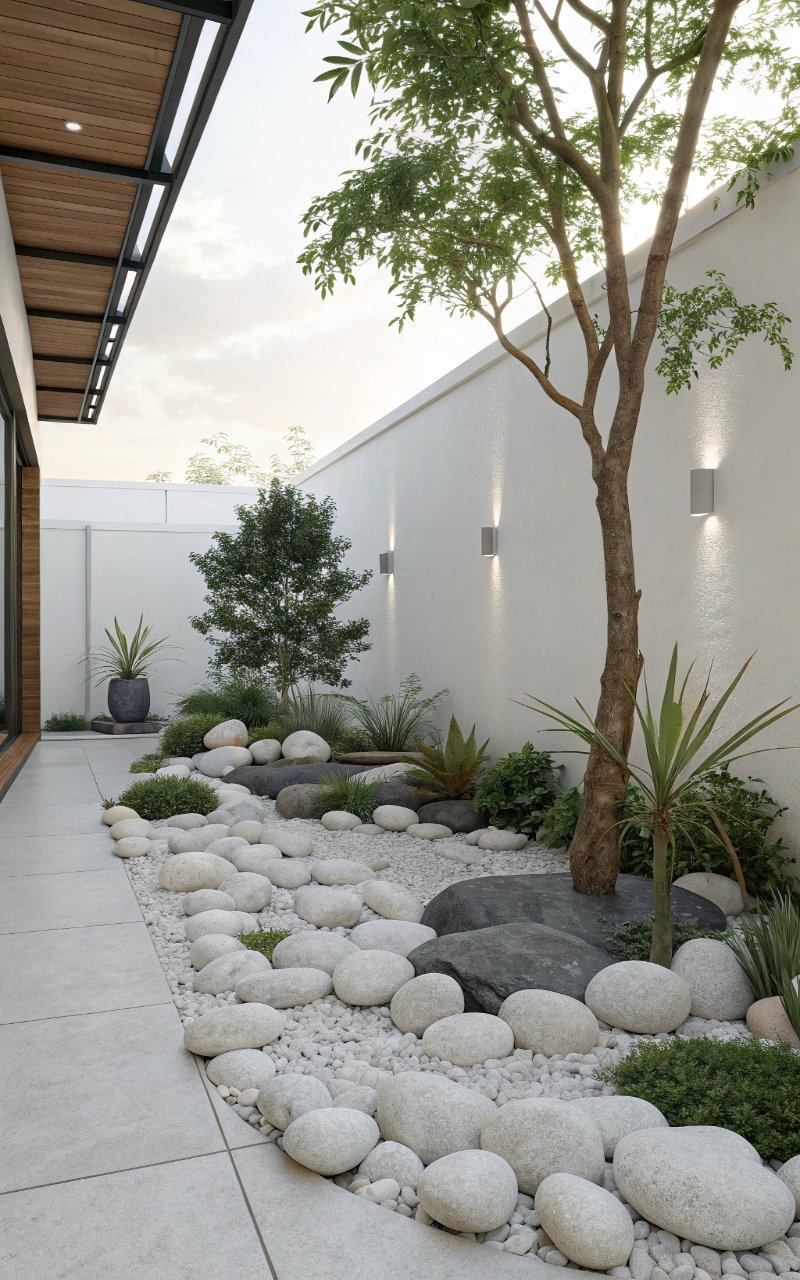 Creating a small Zen area with river rocks added a calming element. The minimal design and raked patterns make it feel peaceful. I love how simple it is. It feels relaxing and intentional. Have you ever wanted a quiet corner? This one brings that vibe.