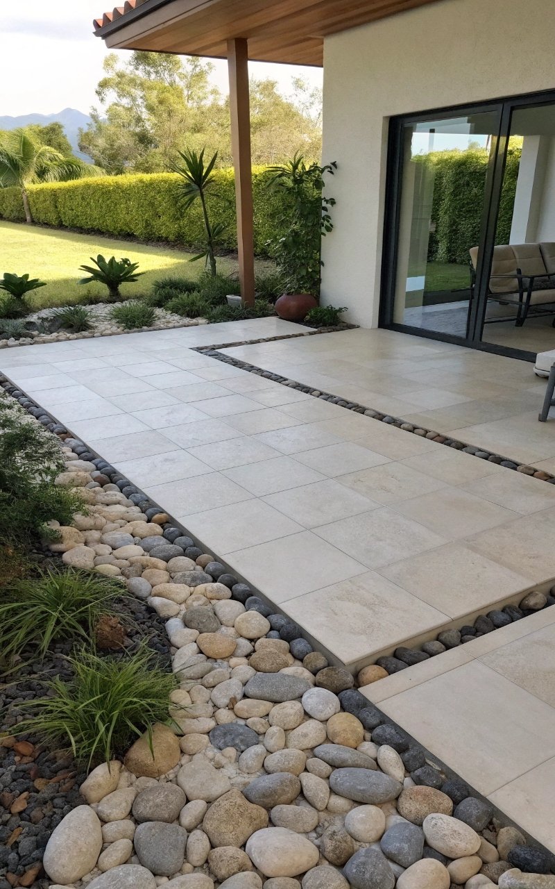 Framing my patio with river rocks made it feel more complete. The defined edges and natural texture create a smooth transition. I love how it ties everything together. It feels intentional and clean. Have you ever framed a space like this? This one works perfectly.