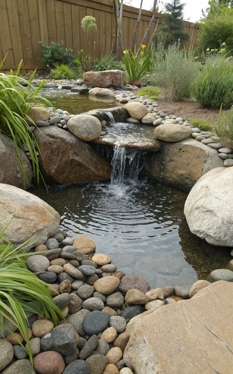 Using river rocks in a small water feature added a natural touch. The flowing water and smooth stones create a calming vibe. I love how it feels peaceful and relaxing. It’s simple but impactful. Doesn’t water make everything better? This one proves it.
