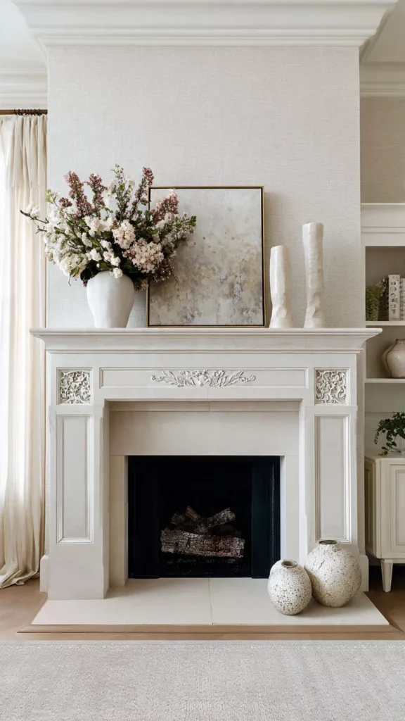 Sometimes the most beautiful hearth is the simplest one. A single vase, sculpture, or candle arrangement lets the fireplace shine. I love how negative space feels elegant and calming. Doesn’t simplicity help the room breathe?