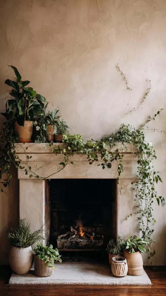 Garlands, stems, or potted plants soften the hearth and add life. Greenery brings a sense of freshness, even in winter. I always feel more grounded when nature is part of the decor. Doesn’t a touch of green change the whole mood?