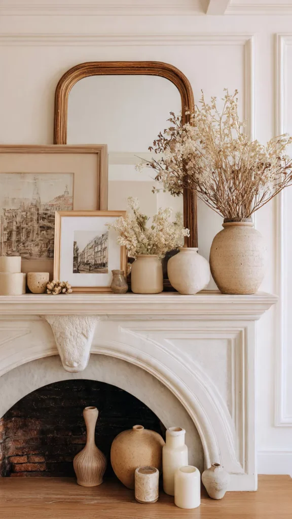 1. Layer Decor on the Mantel for Depth
