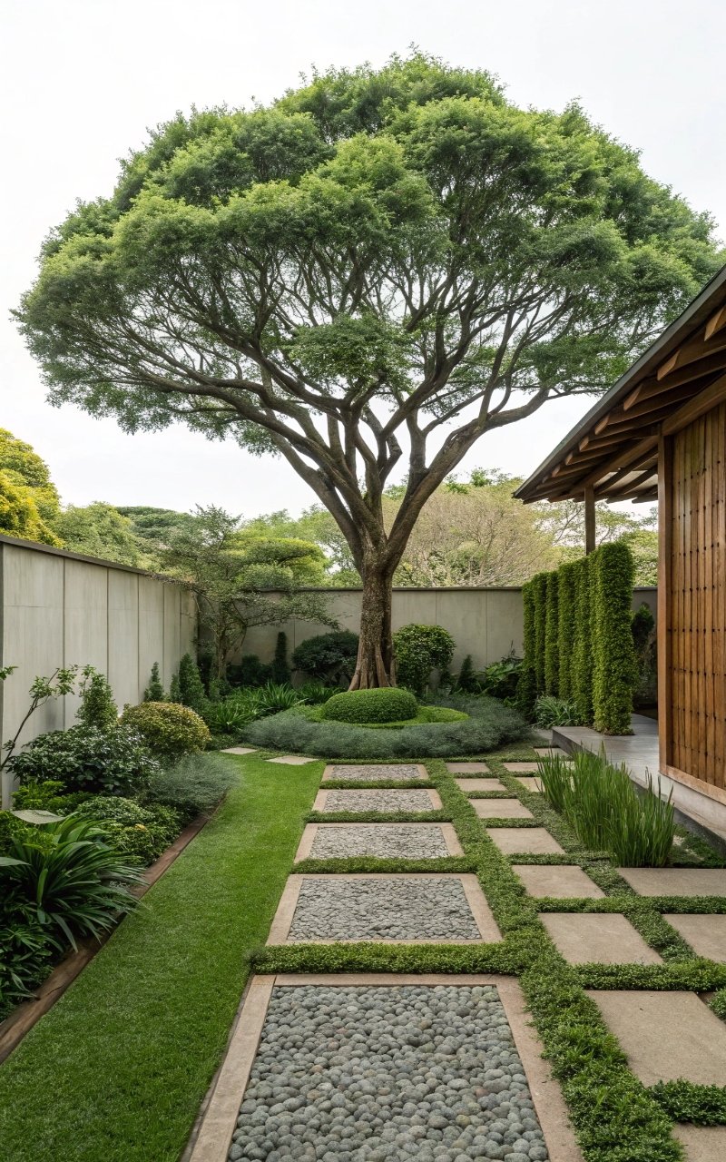 A bold feature creates impact. I love a large tree or sculpture. The yard feels intentional. Nothing feels plain. Doesn’t focus improve design? It’s the highlight.